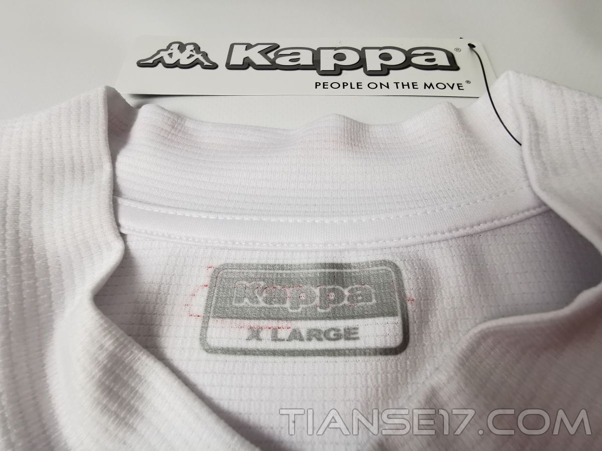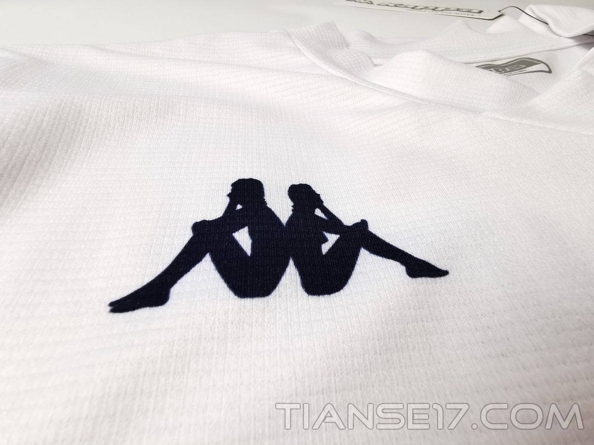 Są jeszcze dwie ciekawe sprawy dotyczące tej koszulki. Najpierw poruszę wersję, którą udało mi się zdobyć. Z pewnością to meczówka. Nie udało mi się jednak dotrzeć, czy to wersja komercyjna, czy niekomercyjna. Czy w ogóle istniały obie, czy tylko jedna z nich. Materiał jest rewelacyjny. Lekki, miękki i rozciągliwy. Jest dokładnie tym, z czego Kappa niejednokrotnie dała się w przeszłości poznać. Już samo wzięcie koszulki do rąk nie pozostawia wątpliwości co do tego, że ma się do czynienia z czymś z wyższej półki.