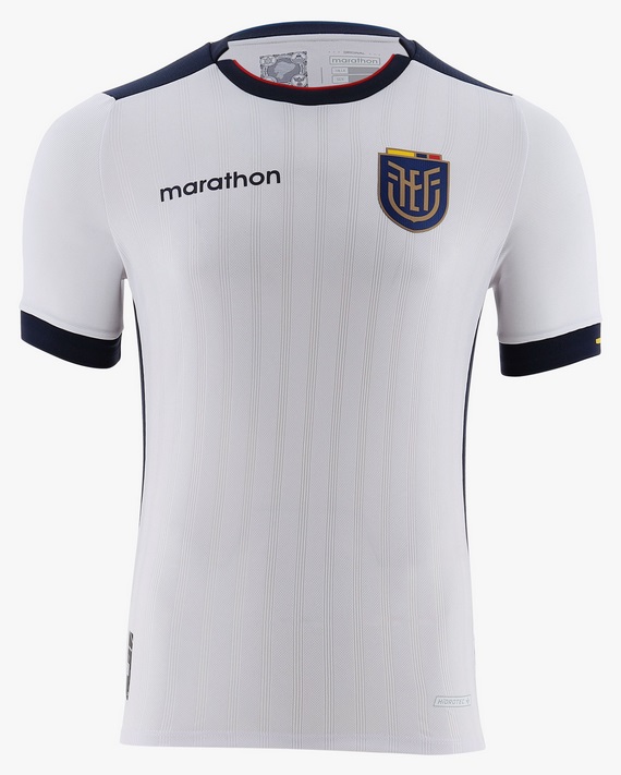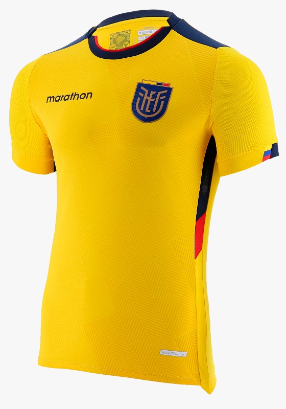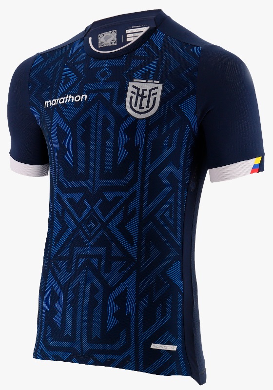 Marathon przygotował aż trzy komplety dla swojego jedynego przedstawiciela na turnieju. Bardzo podoba mi się nawiązanie do motywu Inków, którzy kiedyś zamieszkiwali terytorium Ekwadoru. Zawsze cenię, gdy producent nawiąże do tego typu historii. W szczególności świetna jest wyjazdówka, która cała jest pokryta symbolami kojarzącymi się z państwem Inków. Nawet logotyp federacji Ekwadoru wygląda, jakby miał co najmniej kilka wieków 😉