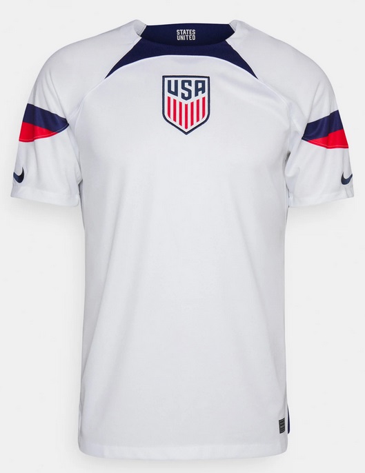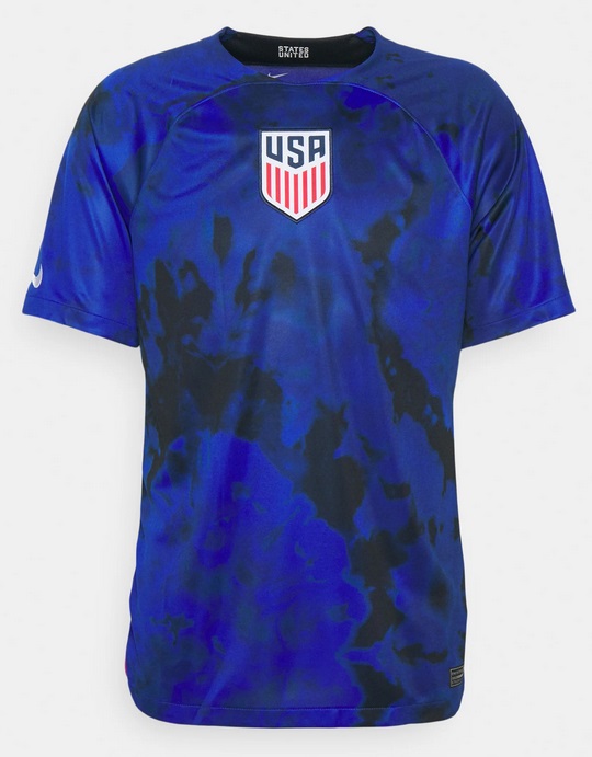 Dodatkowo domówka świetnie wykorzystała półokrągłe odcięcie rękawów na oddzielenie przestrzeni kolorów i emblematów Nike, a klasycznym torsem z pięknie wyeksponowanym logotypem federacji. Wyjazdówka zaś nawiązuje do obecnej mody na ulicach Stanów Zjednoczonych, a jej projekt powstał poprzez zaczerpnięcie inspiracji barwienia lodu. Utrzymano go w granacie, czyli kolorem mocno kojarzonym właśnie z USA.