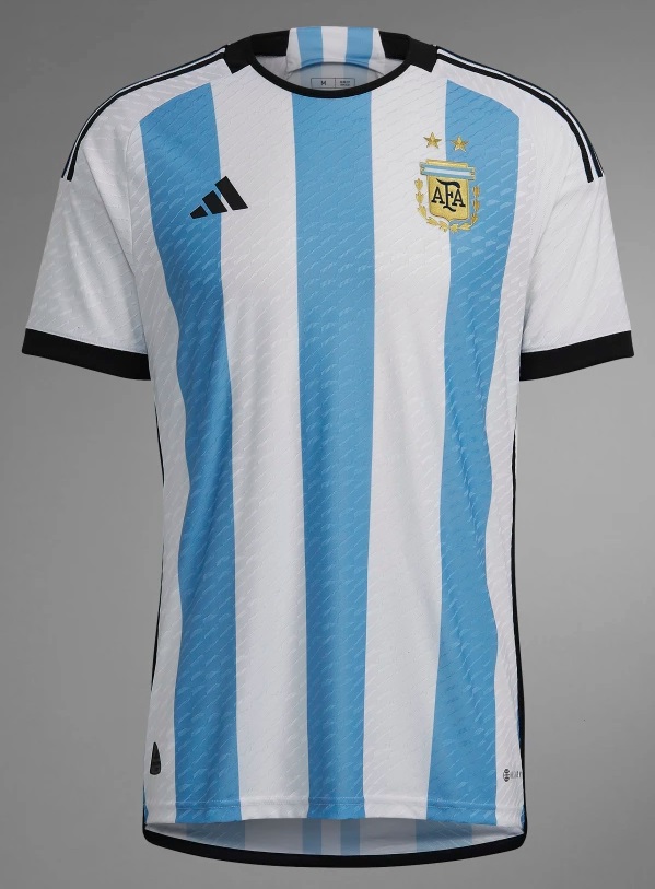 Do tego domówka nie jest nudnym powtarzalnym pasiakiem. Ostre i proste kontury sprawiły, że nowy logotyp Adidasa wpasował się w nią idealnie. Jakby tego było mało, to na plecach trzy wąskie paski przechodzą przez całą długość koszulki, a na tylnej części kołnierza znajduje się symbol Argentyny. Jest to nic innego jak nawiązanie do flagi kraju. Te modele to absolutne sztosy.