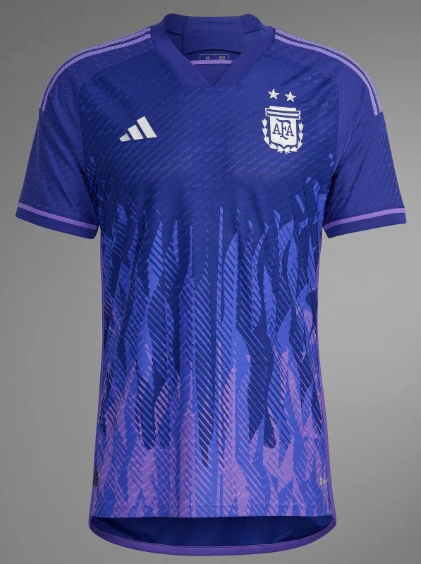Wyjazdówka Argentyny to prawdziwy ogień! Dosłownie i w przenośni. Nie pamiętam tak odważnego i agresywnego trykotu jak ten. Dodatkowo niecodzienny dla tej drużyny kolor – fiolet. Meeega mi się spodobała.