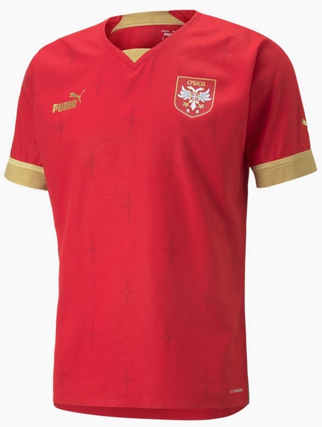 Koszulki Serbów wyglądają elegancko. Oba modele wykończono złotymi dodatkami. Dodatkowo, posiadają charakterystyczny dla tego kraju krzyż, który… zdecydowania zmalał na nowym herbie federacji. Fajnie, że Puma umieściła go na koszulkach. Całkiem nieźle wygląda także dobór obwódki na wyjazdówce.