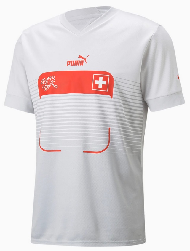 Ach Ci Szwajcarzy. Oni dostają coś wystrzałowego, albo totalną lipę. Tym razem zdecydowanie trafiło na tę druga opcję. Pomysł z poziomymi prążkami całkowicie w moim odczuciu się nie udał. W dodatku pole na wyjazdówce, w przeciwieństwie do poprzednich trykotów Pumy, które zobaczyliśmy w tym zestawieniu, wygląda jak niedokończony dymek na rozmowę. Kompletnie mi się ich stroje nie podobają.