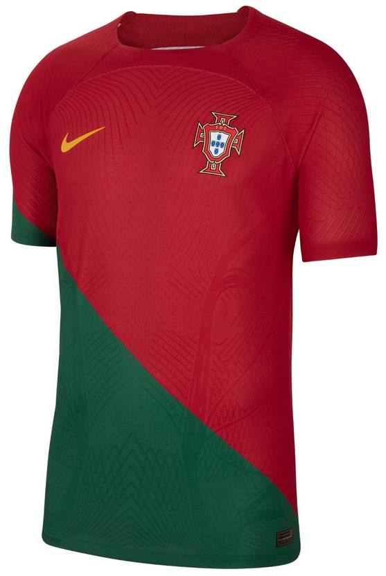 Zdecydowanie wpadło mi w oko to, co przygotowało Nike dla Portugalczyków. Sposób oraz krzywizna odcięcia zielonego koloru jest naprawdę rzadko spotykana i wygląda gustownie. Tym bardziej, że to oznacza powrót do zielonych spodenek, co jest kultowym posunięciem. Drugi model zawiera natomiast motyw flagi, przez co także może się podobać. Z początku zastanawiałem się tylko, dlaczego wykończenia są granatowe, ale… przy opcji konieczności noszenia zielonych spodenek do głównego modelu, to posunięcie otwiera dwie inne kolorystyki dla Portugalii – białe lub granatowe spodenki. Dzięki temu, zapewne będą w stanie wystąpić przeciwko każdemu zespołowi posiadając takie trzy konfiguracje strojów.
