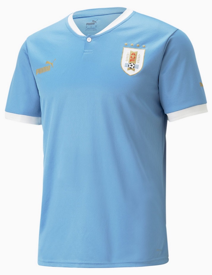 Wersja domowa jest dość smutna. Nudna. Brakuje na niej życia. Od razu skojarzyła mi się z Serbią, ale tam są lepsze detale. Wyjazdówka nadrabia dość dobrze dobranym polem centralnym oraz sporą ilością nawiązań do urugwajskiej flagi – paski poprowadzone przez centrum koszulki, wykończenie rękawów oraz kołnierzyk.