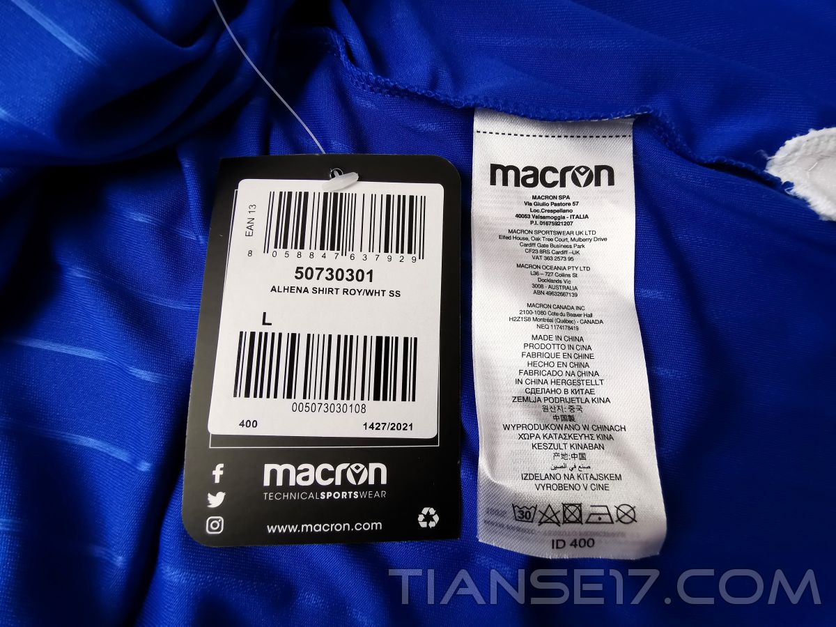 Macron opisywał tę koszulkę jako meczową, więc i ja muszę ją w ten sposób sklasyfikować. Na metce znajduje się numer katalogowy 50730301, który odpowiada templatce. Znalazłem także informację oraz rozmawiałem o tym z Macronem, że roboczo został nadany numer 58569559 tej koszulce, ale nie zmieniano już numeru na metce. Dlatego podałem ten numer jako opcjonalny w tabeli powyżej. Czasem w takich przypadkach można znaleźć nową naklejkę na kartoniku.