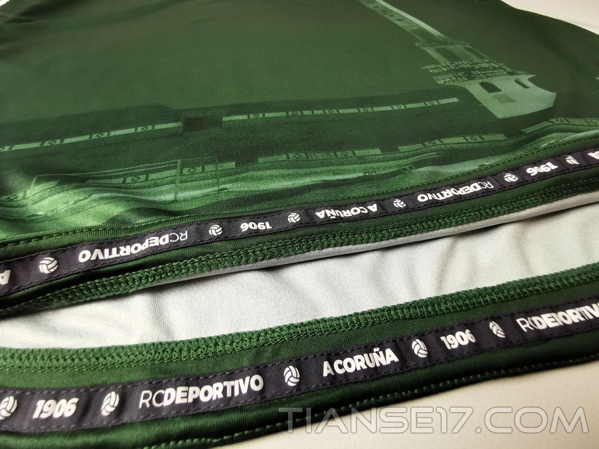 Urzekła mnie ta koszulka gdy zobaczyłem ją na żywo. Szczególnie ten nietypowy dla Deportivo La Coruna kolor. Głęboka zieleń. Pięknie się to prezentuje. Przejrzałem historię koszulek tej drużyny i dość rzadko pojawiały się trykoty w takich barwach. Jednak w tym przypadku zieleń jest w pełni uzasadniona. Nawiązuje do murawy, bowiem trykot hołduje legendarnemu stadionowi.