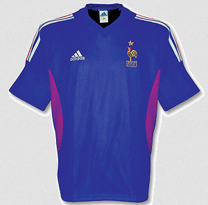 „Trójkolorowi” na tamtym turnieju nosili tykoty, które przygotował im Adidas. Trudno było doszukiwać się w nich czegoś nadzwyczajnego, poza elementem tradycyjnych pasków na ramionach. Przybrały one kolory flagi Francji. Niestety, jeszcze nie mam żadnego trykotu, dlatego w tym jedynym przypadku muszę pokazać Ci nie swoją fotkę: