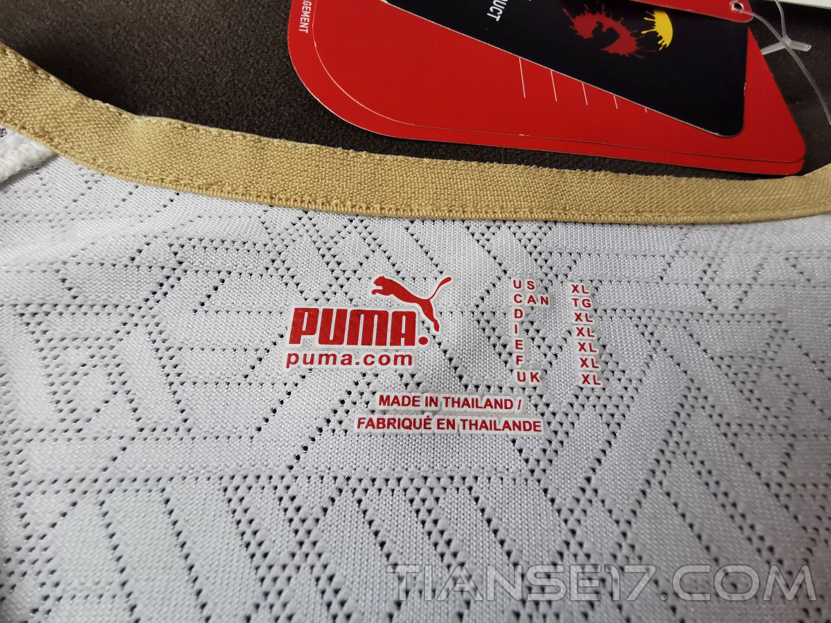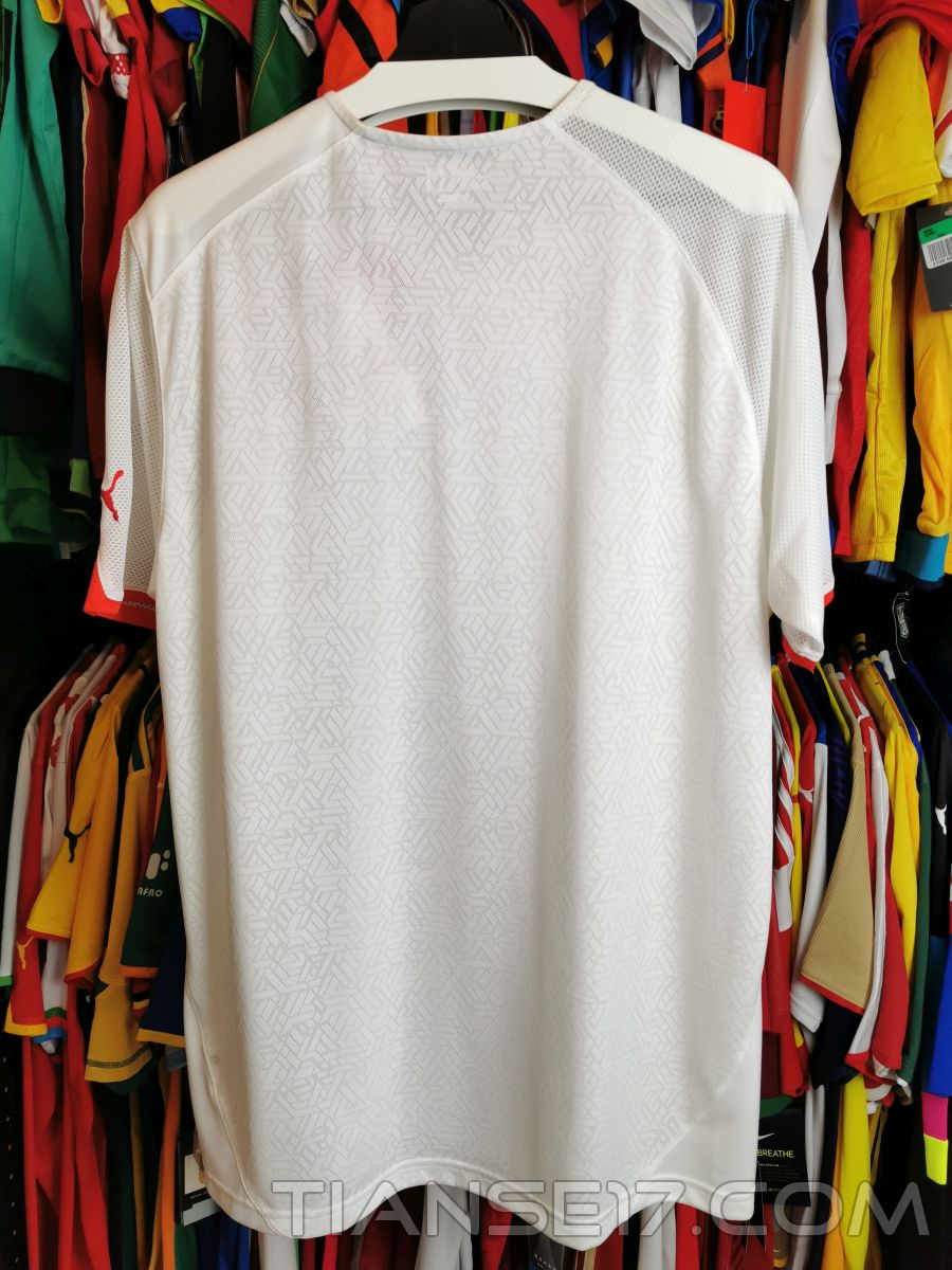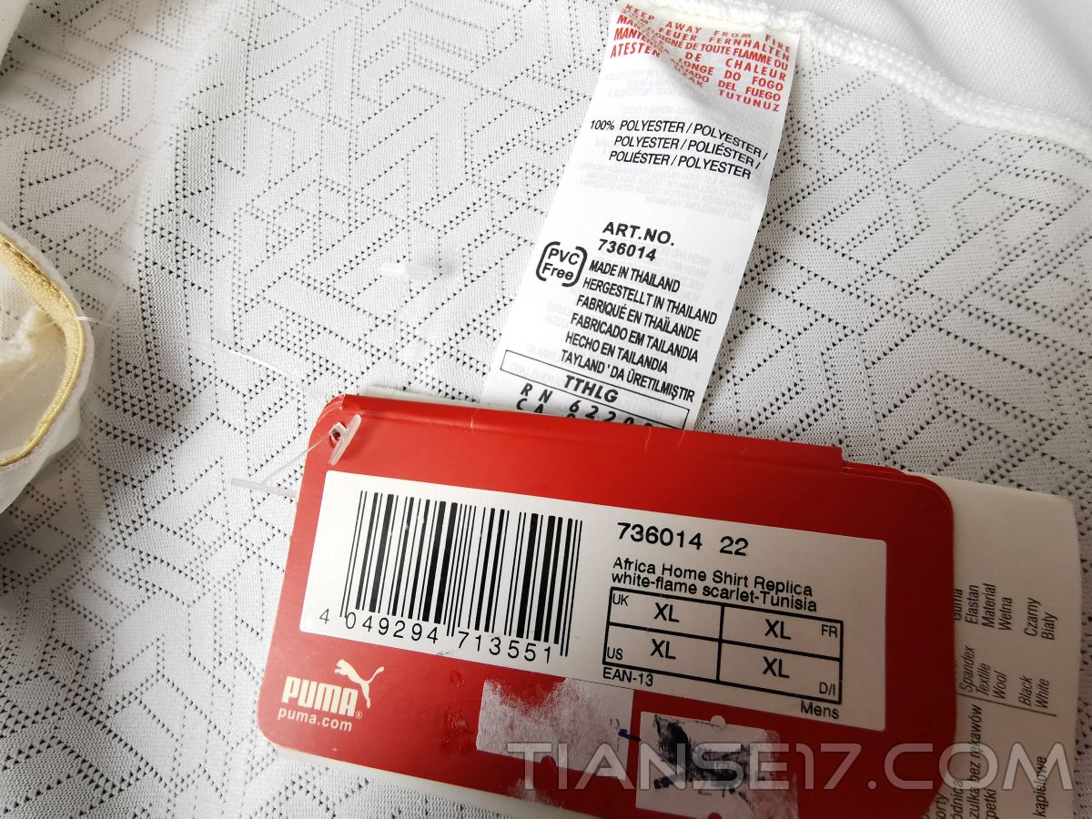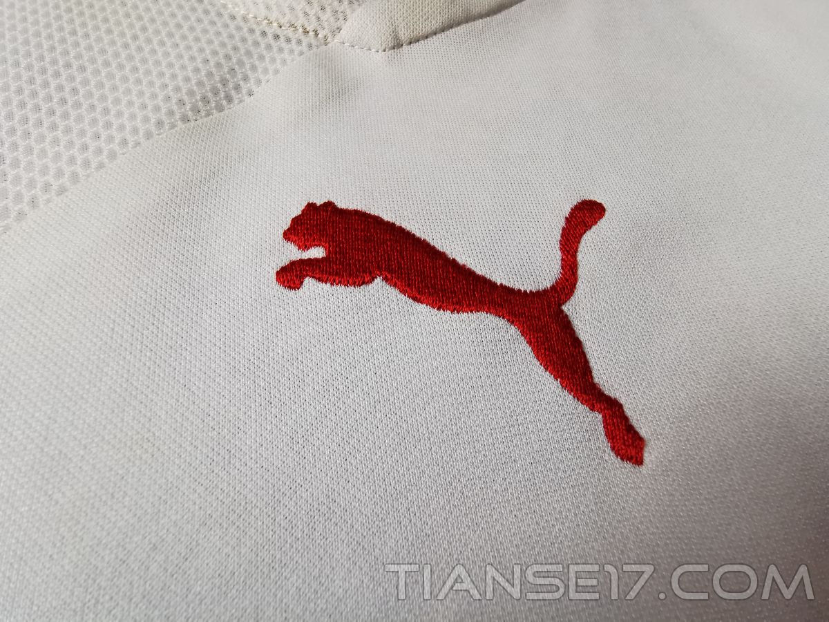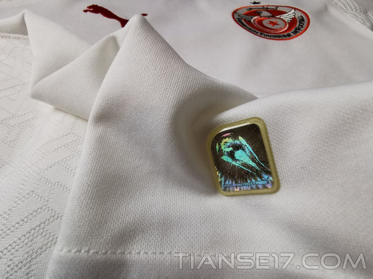 „Orły Kartaginy” to przydomek reprezentacji Tunezji. Puma świetnie to zobrazowała fundując grafikę orła na prawym ramieniu. To generalnie były ciekawe projekty – odcięcie ramienia, które było wykonane z innego materiału – siateczki. Najczęściej w tym miejscu umieszczany był również charakterystyczny dla danego zespołu element. Ciekawe, tak samo jak plecy. Mimo iż to replika, ma się wrażenie, jakby ten element przewyższał technologicznie poziom replik. Wyglądają one rewelacyjnie, jednocześnie zapewniając świetną wentylację.